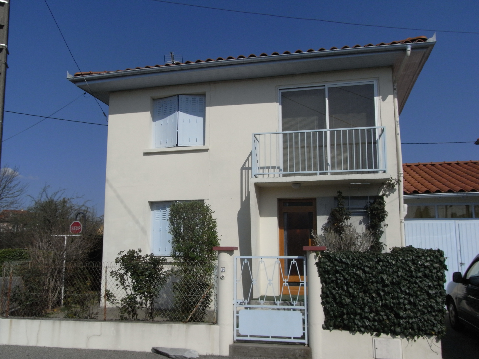 Dans quartier calme, jolie maison avec en rez de chaussée , cuisine équipée, séjour/salon, garage et à l'étage trois chambres avec placard chacune,salle d'eau avec wc, loggia vitrée, jardinet clos avec terrasse. Chauffage central gaz individuel